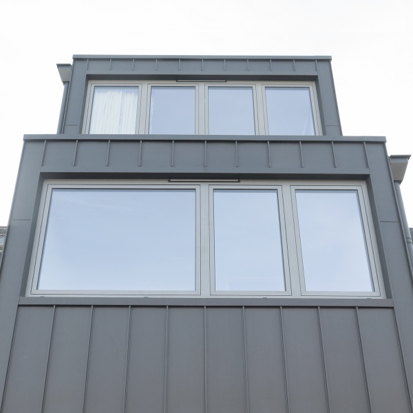 A double rear dormer extension clad in anodised pressed metal with aluminium windows and select internal remodelling to a 70's terrace in Islington, North London. The works will provide two extra bedrooms and a study for a young family, as well as increased storage and new views to the rear.